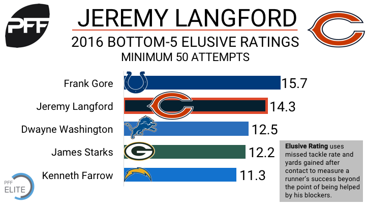 - Langford is listed as the number two running back behind RB Jordan Howard on the Bears’ first unofficial depth chart. In 2016, Langford averaged just 9 yards after contact per attempt, which ranked last out of 68 running backs with more than 50 attempts.