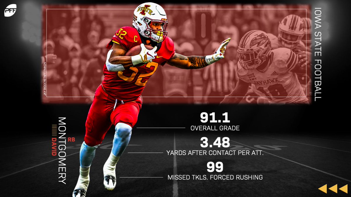 On paper, it was a mere one yard gained after contact. In the grand scheme of things, though, it was a game-changer. The Cyclones went on to win 40-31, and Montgomery finished the day with 125 yards — 74 after contact — and 11 missed tackles forced.