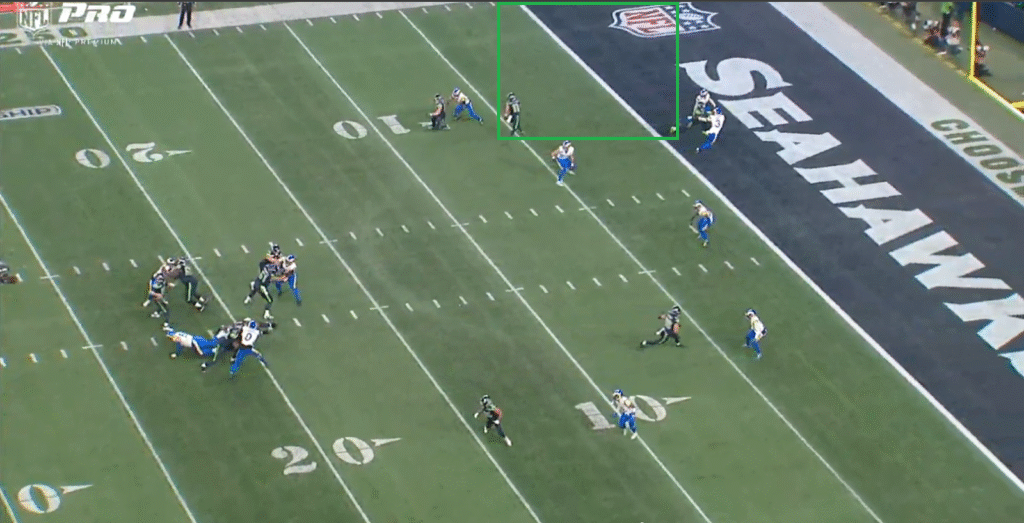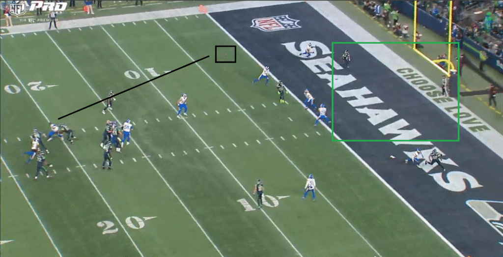 Smith-Njigba ran his route so well on this play that Landman began to run inside. When looking at the screenshot, it doesn’t even appear as though someone is covering the receiver.