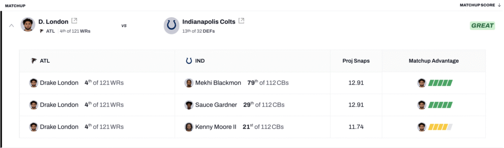 Atlanta Falcons WR Drake London vs. Indianapolis Colts CB Sauce Gardner
