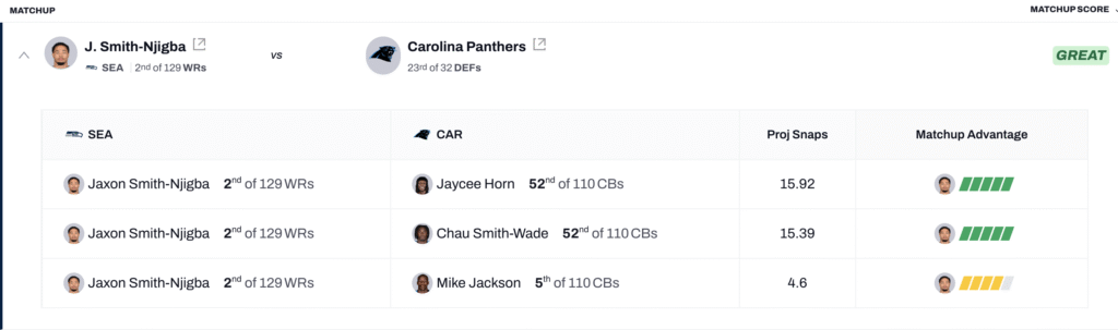 Seattle Seahawks WR Jaxon Smith-Njigba vs. Carolina Panthers CB Mike Jackson