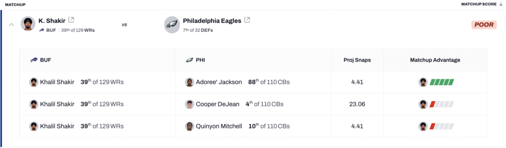Buffalo Bills WR Khalil Shakir vs. Philadelphia Eagles CB Cooper DeJean