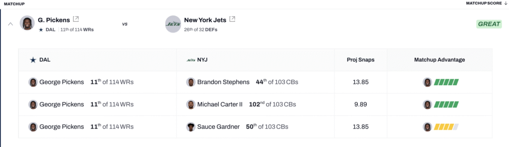 Dallas Cowboys WR George Pickens vs. New York Jets CB Sauce Gardner