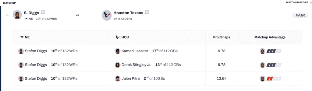 New England Patriots WR Stefon Diggs vs. Houston Texans S Jalen Pitre