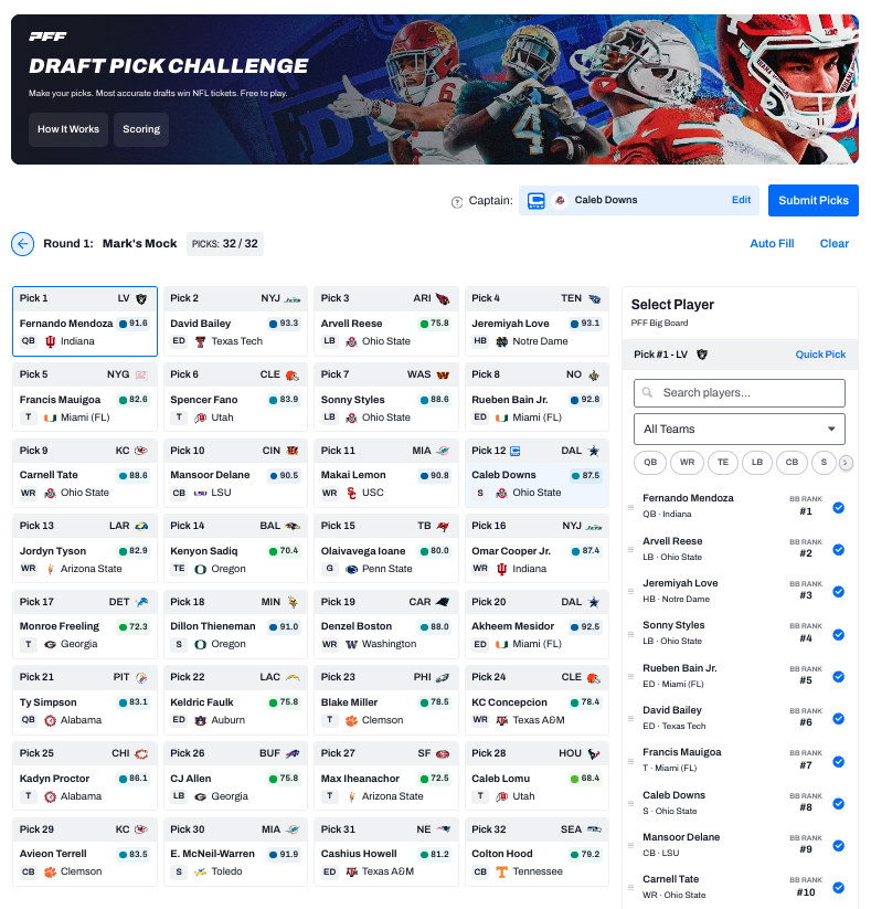 PFF is launching the Draft Pick Challenge, a free-to-play contest that puts fans’ draft knowledge to the test with real rewards on the line.