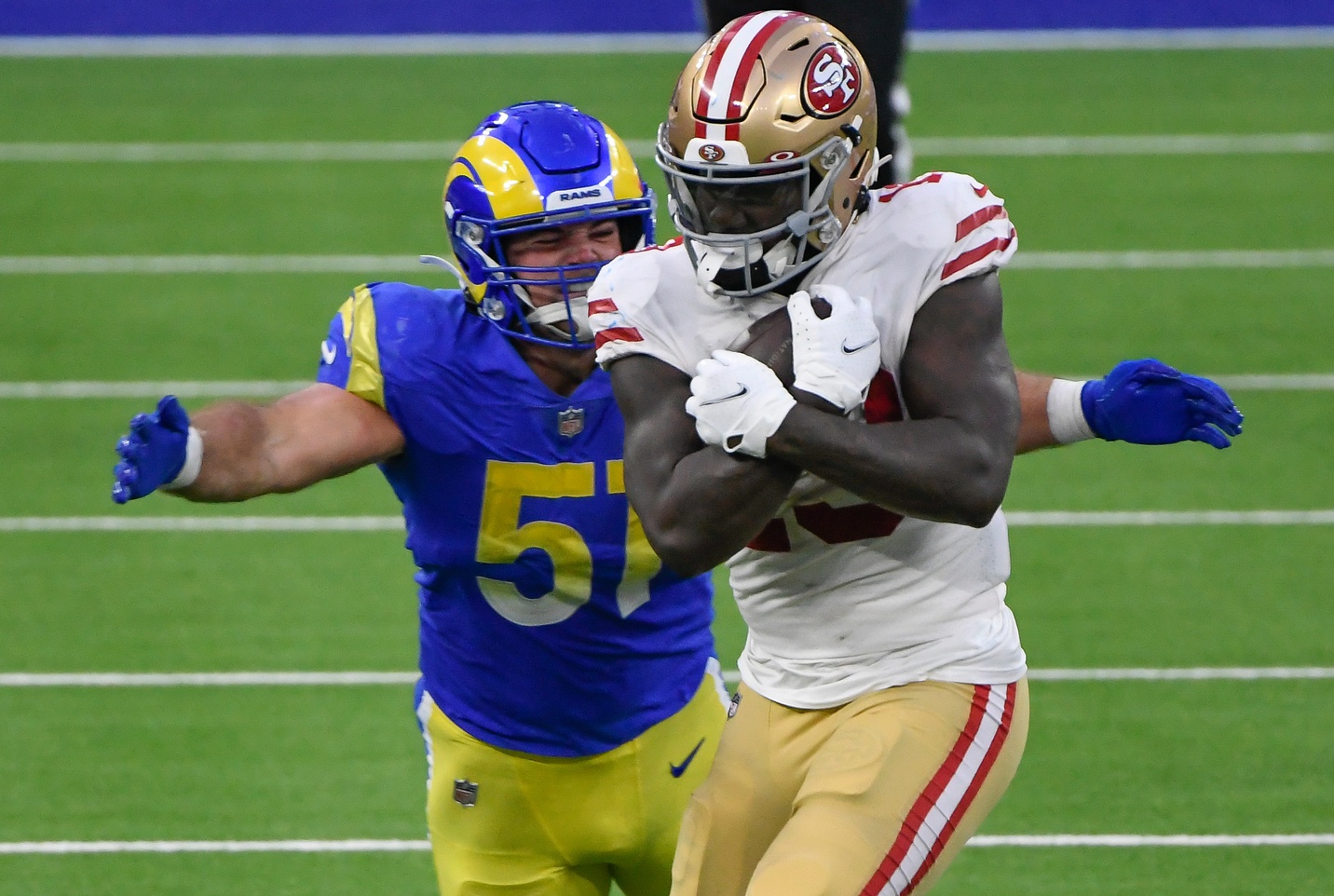 With quarterback Jimmy Garoppolo and star tight end George Kittle out due to injuries, the San Francisco 49ers found a way to knock off the division-leading Los Angeles Rams for the second time this season, 23-20.