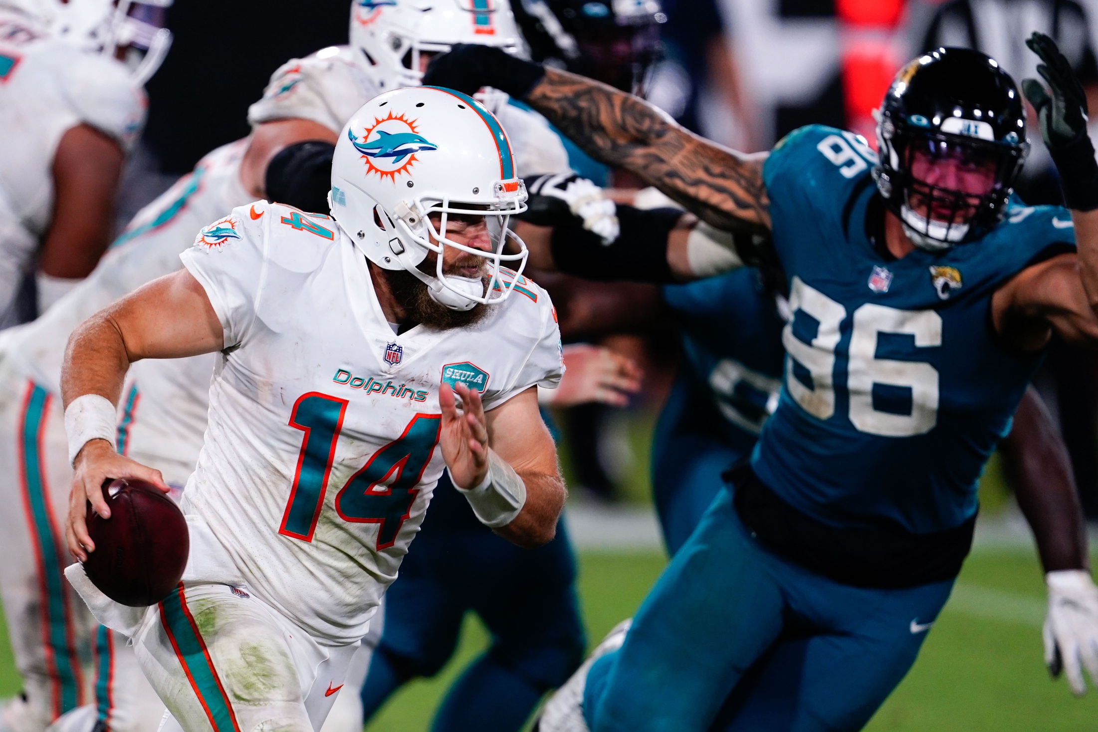 The Miami Dolphins upended the Jacksonville Jaguars on Thursday Night Football thanks to the arms and legs of veteran QB Ryan Fitzpatrick.