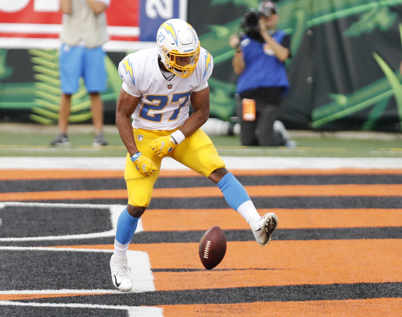 Joshua Kelley, Damien Harris and Tee Higgins top the Week 5 waiver wire options worth considerable FAAB offers in fantasy football leagues.