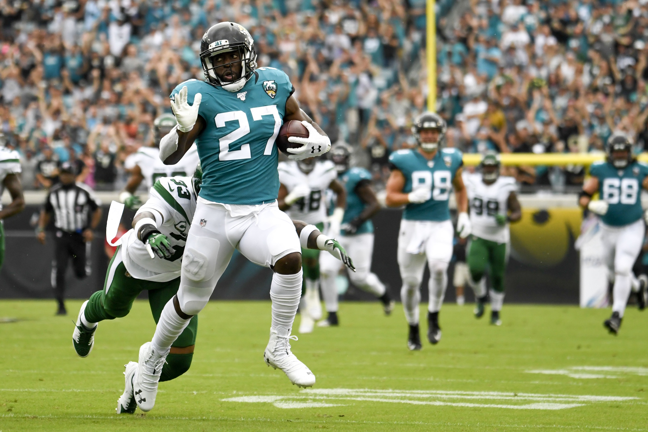 Leonard Fournette and the Jacksonville Jaguars rolled over Sam Darnold's New York Jets at home, improving to 4-4 on the year with the win.