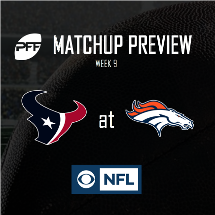 The PFF Preview Team previews The Texans' clash with the Broncos and breaks down the key statistical data that we provide to CBS prior to the game.
