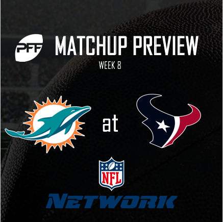 The PFF Preview Team previews The Dolphins' clash with the Texans and breaks down the key statistical data that we provide to NFL Network prior to the game.