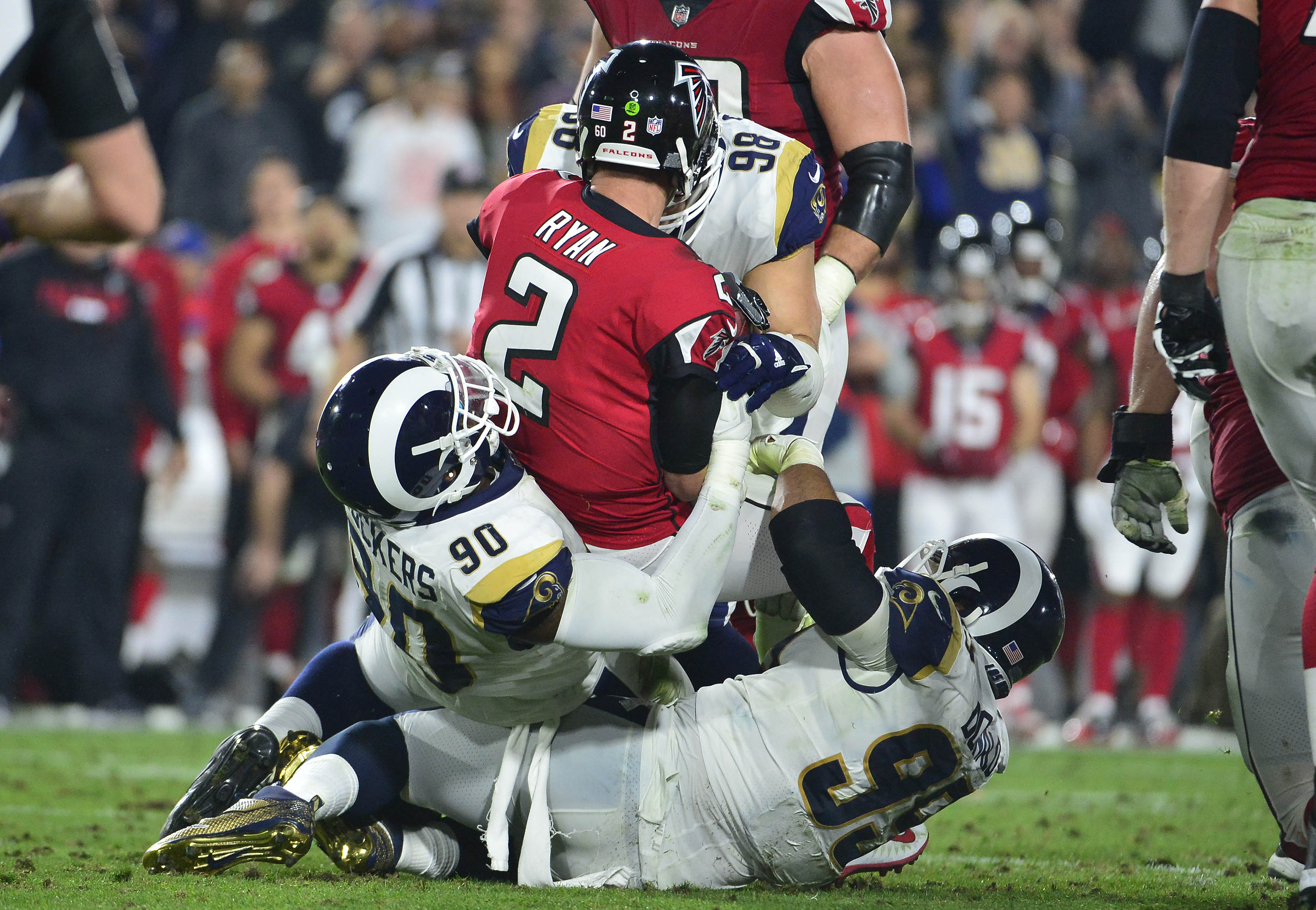 Aaron Donald recorded 10 first half pressures against the Atlanta Falcons in what became the league's top-graded performance from an interior defender in 2017.