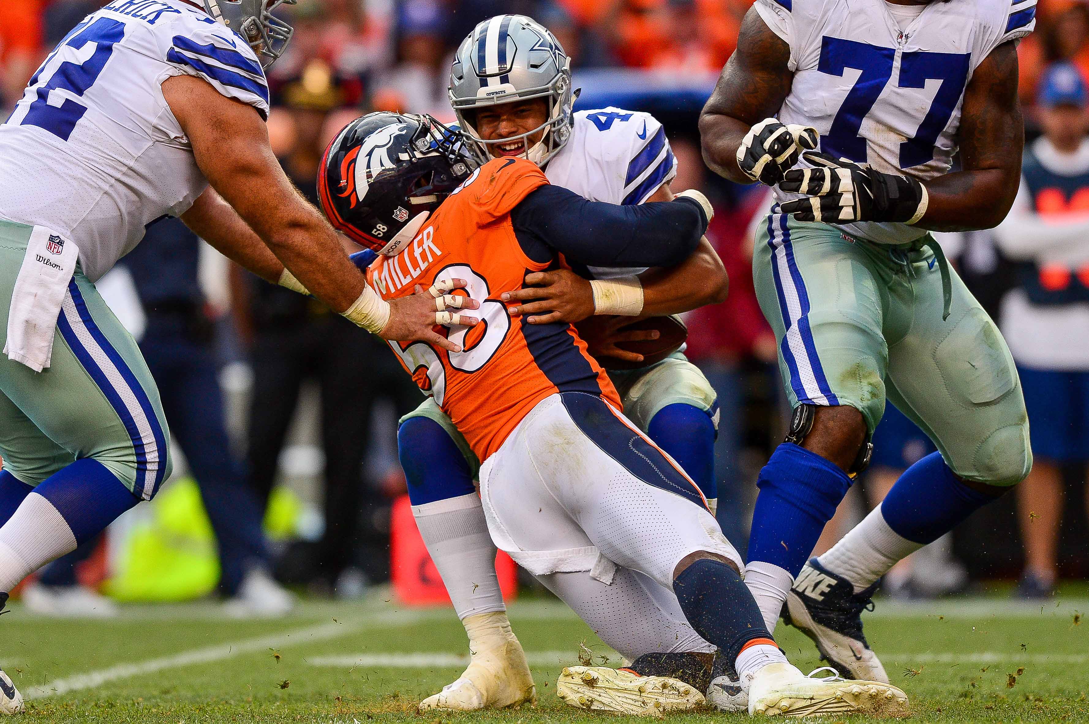 Miller & Barrett combine for 21 total QB pressures between themselves, pressuring Dallas QB Dak Prescott all afternoon.