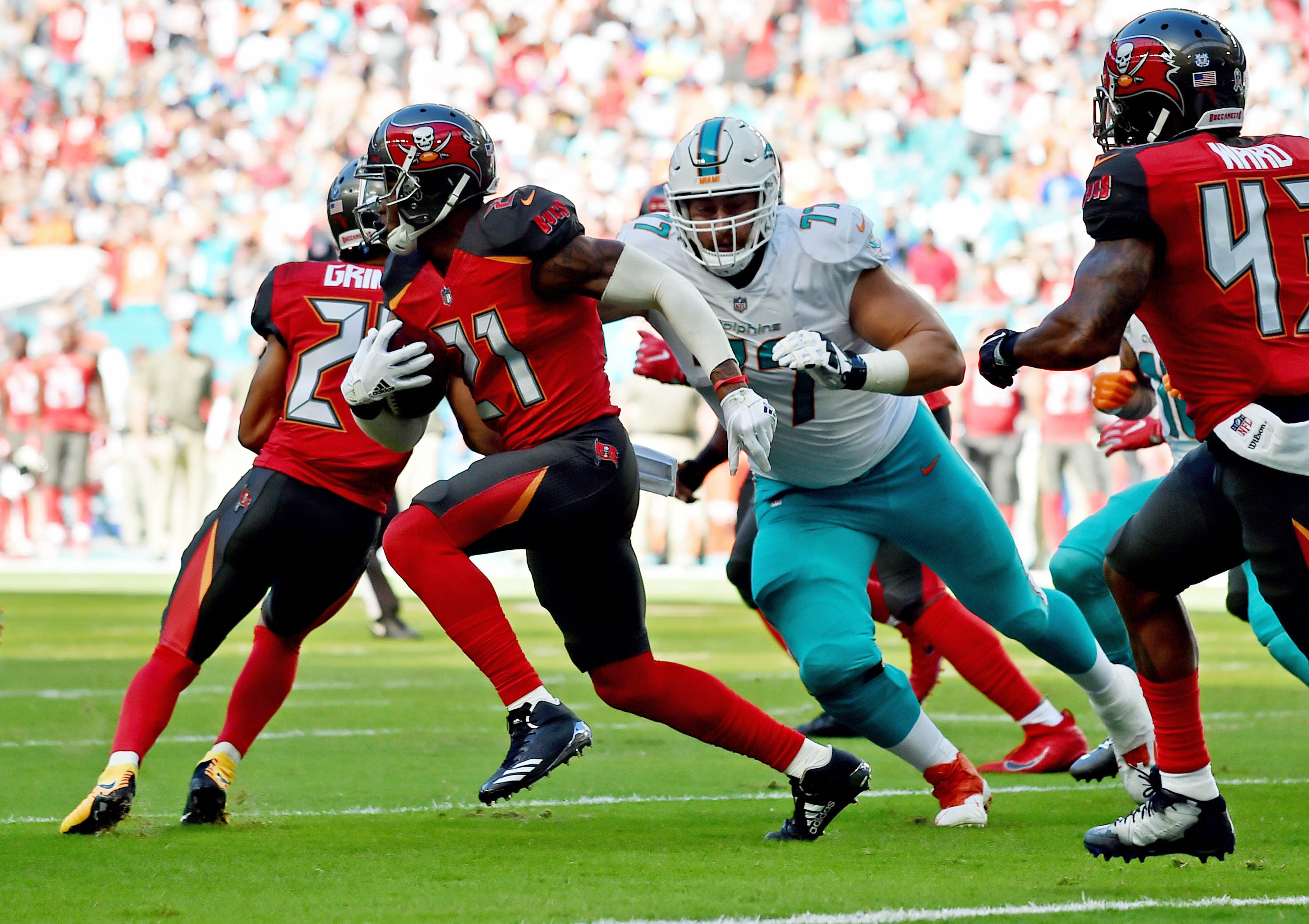 The Tampa Bay Buccaneers visit the Miami Dolphins in Week 11 of the 2017 NFL season. PFF previews the top player matchups of the game.