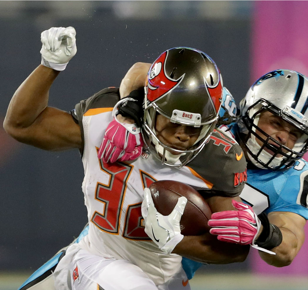 Fill-in running back forces eight missed tackles in win, while Carolina wastes stellar performances from TE Greg Olsen and LB Luke Kuechly.