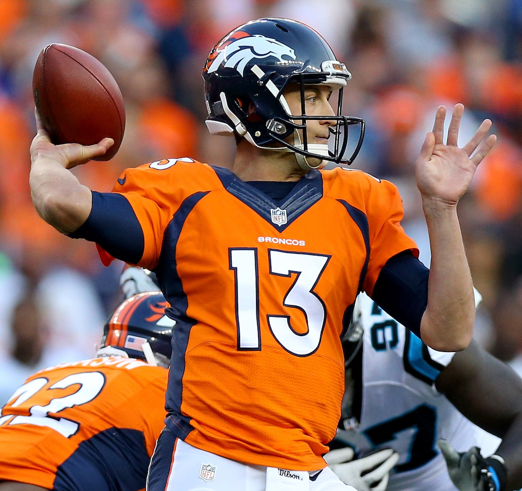 Last year's MVP plays great in first half but is limited in second. Denver's offensive line and defense grade very well, while QB Trevor Siemian is solid in his debut.