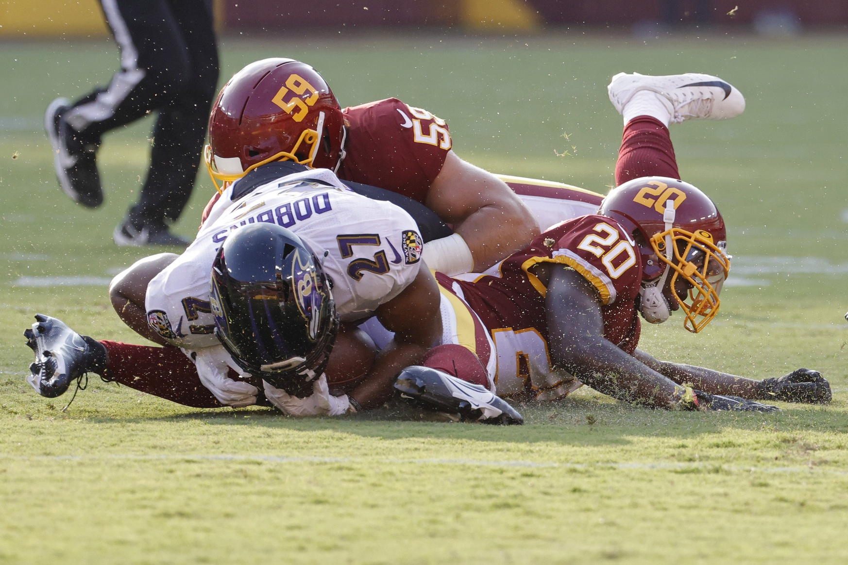 Baltimore Ravens running back J.K. Dobbins is out for the year after he left the game with an apparent knee injury in the first quarter of a preseason game against the Washington Football Team.