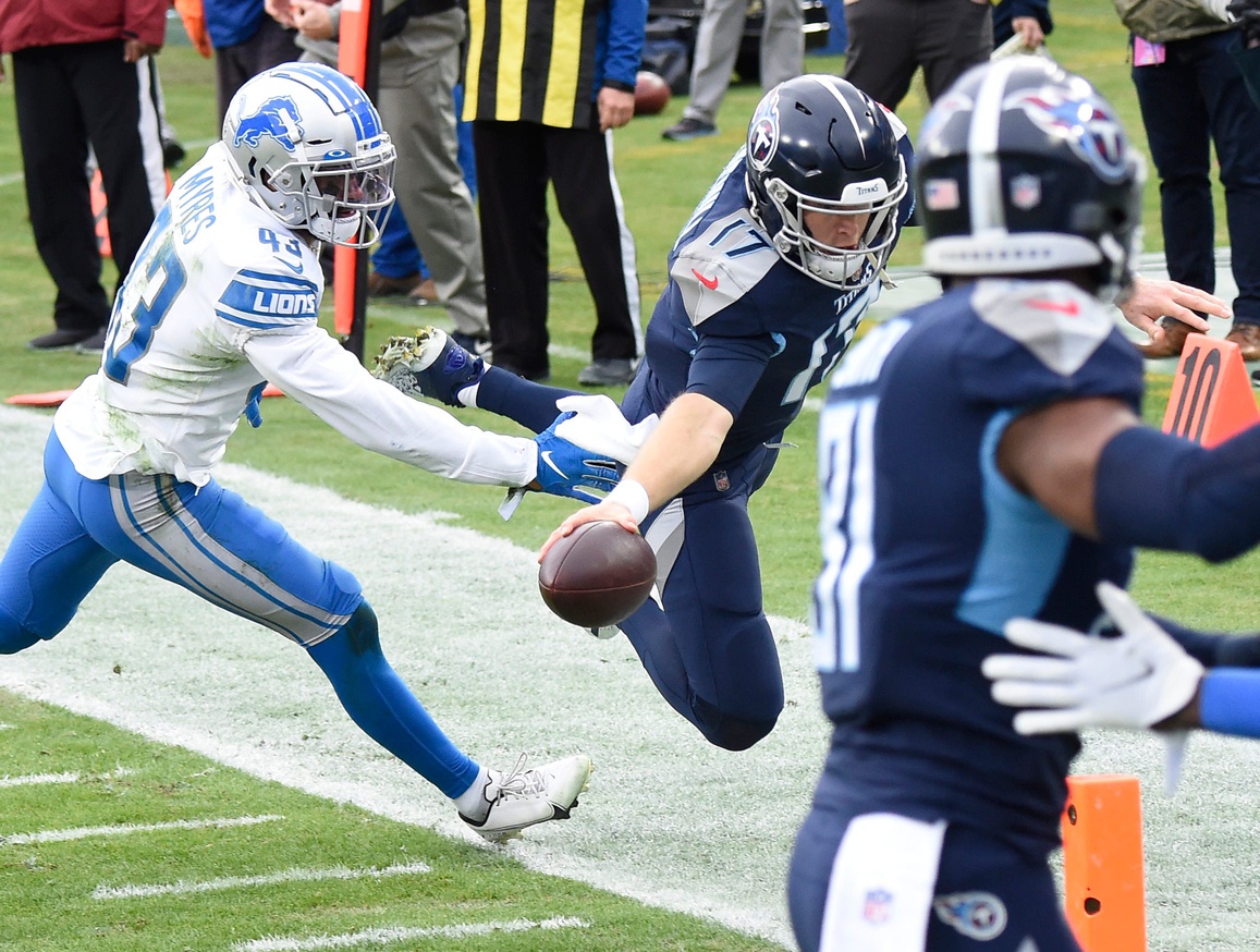 Ryan Tannehill and Derrick Henry turned in near-perfect performances to lead the Tennessee Titans to a convincing 46-25 win over the visiting Detroit Lions.